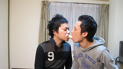 Koji and Daisuke, two cute Japanese boys, star in the latest video we have on JapanBoyz. They meet outside on a cold day and go back to Koji’s place to “warm up”. Soon they are sharing a banana with each eating one end at the same time. That soon leads to some hot kissing and sets the stage for a hot sensual scene.