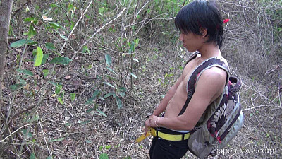 This week we present a special series on our sexy gay Asian twink Ken. We decided to take a trip and go backpacking around Okinawa. As Ken was walking in the woods, a hot young man named Mits spotted him. Ken went to take a piss, which really made Mits horny, as he soon pulled his cock out and started jerking it. It wasn't long tell the 2 made eye contact and it was love at first site. From kissing, to sucking, to bareback fucking in the outdoors this is one hot video you don't want to miss!!