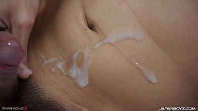 Fuji pulls out his throbbing cock and gives it a few strokes, then it's pumping out cream into the puddle on Gou's belly. Think these two are gonna have some fun again? We bet they will!
