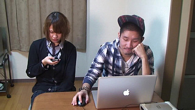 When looking for a quick hook up, Japanese boys love using their iphones and Grindr. Tatsushi and Kosuke came too are studio, horny to help us find a new model for an orgy. We asked if they thought they could help us, and it wasn't long before they found someone close by..in the same building in fact..to get into our studio for an orgy. We were very excited to see the gorgeous boy they found, Masataka. This boy's face is so cute and dreamy he should be on the cover of a magazine! Tatsushi and Kasuke couldn't wait to get down to some sex with him, and soon started kissing him and feeling his nice cock in his warm underwear. Kosuke got on his knees and took to sucking his fat dick while Tatsushi gave him some deep french style kisses. Gorgeous Masataka, horny as he was for some cock, got on his knees and took turns sucking both their hard-ons. Finally they all went to the bedroom for more sucking and ass play. Masataka went crazy on stroking Kosuke's cock and the fresh faced twink soon shot a creamy, chunky white load.