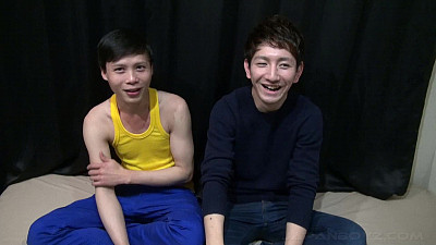 Trading off, Seki now undresses Khan and begins to caress; "working" his knee, Khan keeps rubbing Seki's dick. Sucking on the nipples, Seki then goes south and is given a nice face-fuck "welcum." Getting the lube, Khan opens up Seki's hole, first with his fingers and then with his dick. We'll give you a look, but "cum" back for the full "taste."