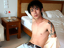 After getting a little help from the handy cameraman, Maitree feels more comfortable posing in front of the camera and continues jerking off his big Thai cock till he shoots his load on his nice and lean body and washes himself up in a sexy shower scene.
