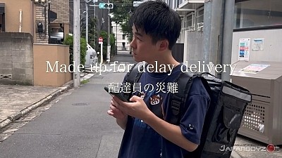 When Ryo lies back with his legs up and spread wide, Urano dives in for a musky mouthful. Then a finger or two follows, then Ryo's groaning with Urano's massive meat up his hungry ass. He wraps his arms around Urano's muscular shoulders as the happy customer plows in. When positions change and Ryo's doing the riding, we get to see that through it all this trusty delivery boy still has his shinty black parcel backpack slung over his back. But don't let work interfere with a hot playtime, Ryo, who ditches the backpack to lie back and let Urano speed up his thrusts for a hot juicy finish.