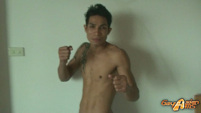 Just looking at Rock makes me hard, so I invited this gay Asian muscle stud back to my place for a bit of fun. He arrived wearing some sexy muai Thai boxer shorts, which he knows I have a fetish for. Soon I could see his hard cock peeking out of the shorts, so with one hand on his rippling abs and the other hand on his cock I began fluff this Asian stud, capturing photos any which way I could.