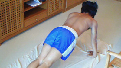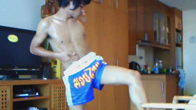 Simon is a real life Thai boxer. Underneath those thin Muay Thai shorts lurks a monster uncut dick. Watch as Simon stretches and warms up before getting his cock serviced by the coach.