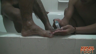 Simon, Singha and his buddy are washing themselves up after a field day outside playing soccer. Looks like Simon really cares about his friends' foot sanitation. He cleanses them, licks them and sucks them toes squeaky clean.