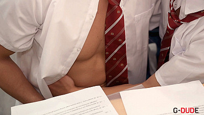 Bored schoolboys Don and Fu are "boning up" for an exam when they get distracted by the growing bulges under their desks and between their legs. Soon they're up on the desks or against the blackboard screwing their cockhungry brains out.