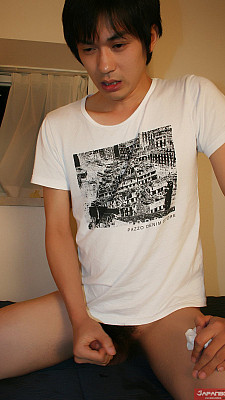 While waiting for his partner to come, Takesh thought he might get a head start, literally, with his big mushroom head down there. As he starts touching himself and rubbing his cock, it gets bigger and harder with every stroke. He lubes it up to smoothen the flow as he jerks off faster and faster till that creamy cum squirts out of his cumslit.