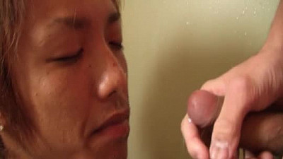 Yoichi moans softly as he gets his ass rimmed by his sexy friend. Not wanting to heat things too fast, Shigeru turns to nibble the hard muscles of Yoichi's butt, then grabs his buns and dives back in for another taste. He stands and begins milking his cock against Yoichi's tongue and soft lips. When his load cums shooting out, it runs up along Yoichi's nose and down to his chin. Shigeru gives him a hot kiss for their sweet time in the shower.