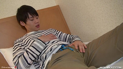 Cut, thick and with a large head, Takumi is "packed" for schooling. Presenting his inviting hair-lined hole, he then turns his attention back to his cock, as do we. Starting to breathe harder, I pan above this hot twink as he feverishly goes for a release; his stomach tightens and his lips redden. With a couple more tugs, Takumi says he's cumming and does, beautifully. Blowing to his face, he turns and misses, but "unloads" everywhere else.